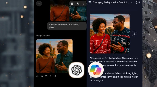 Copilot ni AI ya Microsoft, inayotumia teknolojia ile ile ya “OpenAI” kama ChatGPT (mfano GPT-4 na GPT-5). Ina uwezo sawa wa kuedit picha, kuandika, kutafsiri, kutoa majibu na kufanya kazi nyingi kama ilivyo ChatGPT. Tofauti kubwa ni kwamba Copilot hukuruhusu kutengeneza na kuedit picha bure bila kikomo.